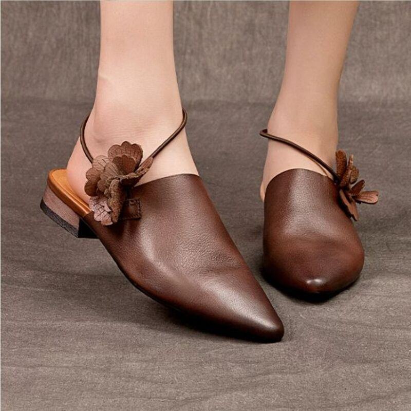 2026 Summer New Style Leather Sandals for Women - Comfortable and Versatile Cowhide Low Heel Shoes