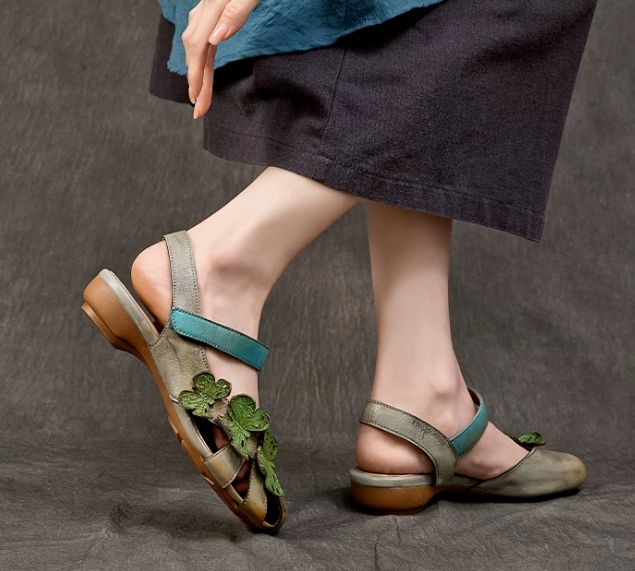 2026 Summer New Style Leather Sandals for Women - Comfortable and Versatile Cowhide Low Heel Shoes